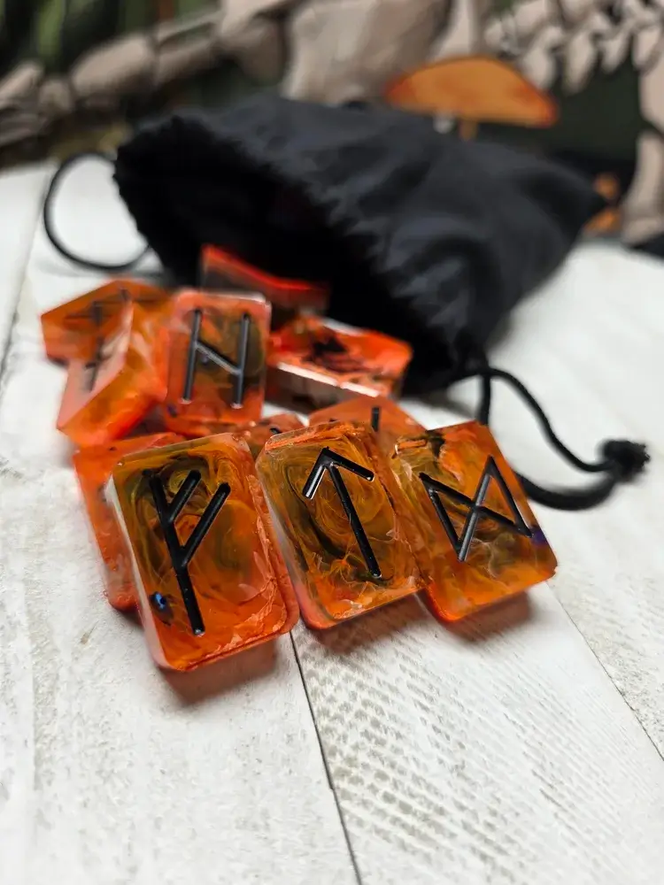 Each set is a one-of-a-kind creation, born from the careful hands of a fellow adventurer. Like treasures discovered within a dragon’s hoard or potent ingredients gathered under a silvery moon, every rune has been individually formed and imbued with its own distinct character.