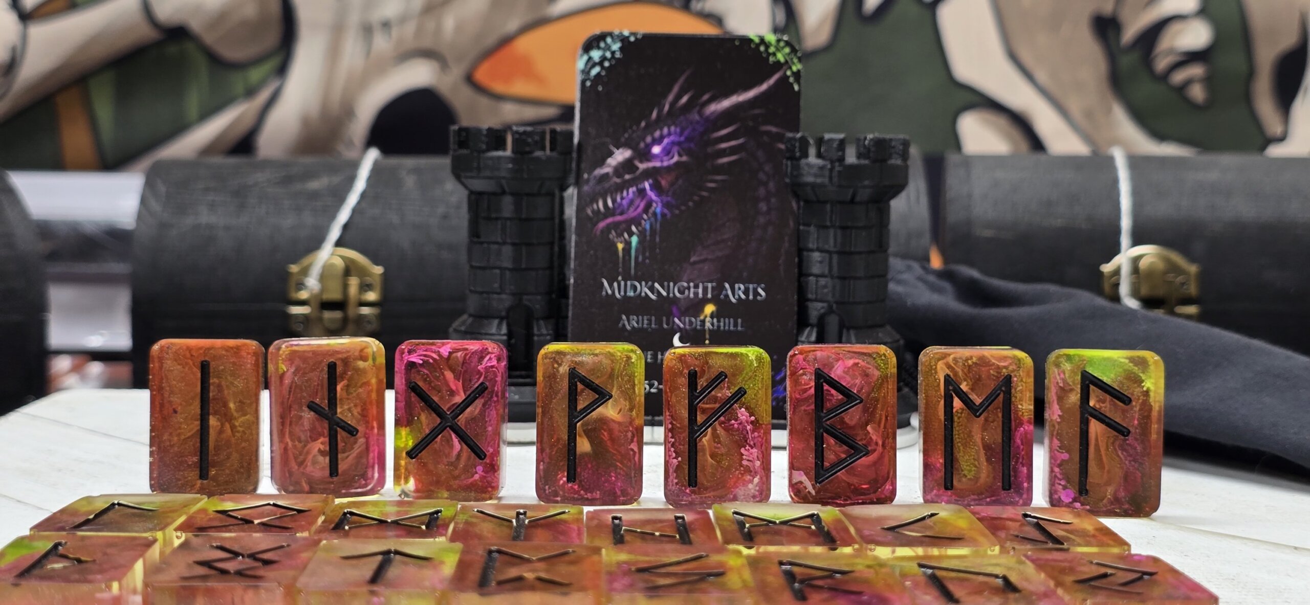 Each set is a one-of-a-kind creation, born from the careful hands of a fellow adventurer. Like treasures discovered within a dragon’s hoard or potent ingredients gathered under a silvery moon, every rune has been individually formed and imbued with its own distinct character.