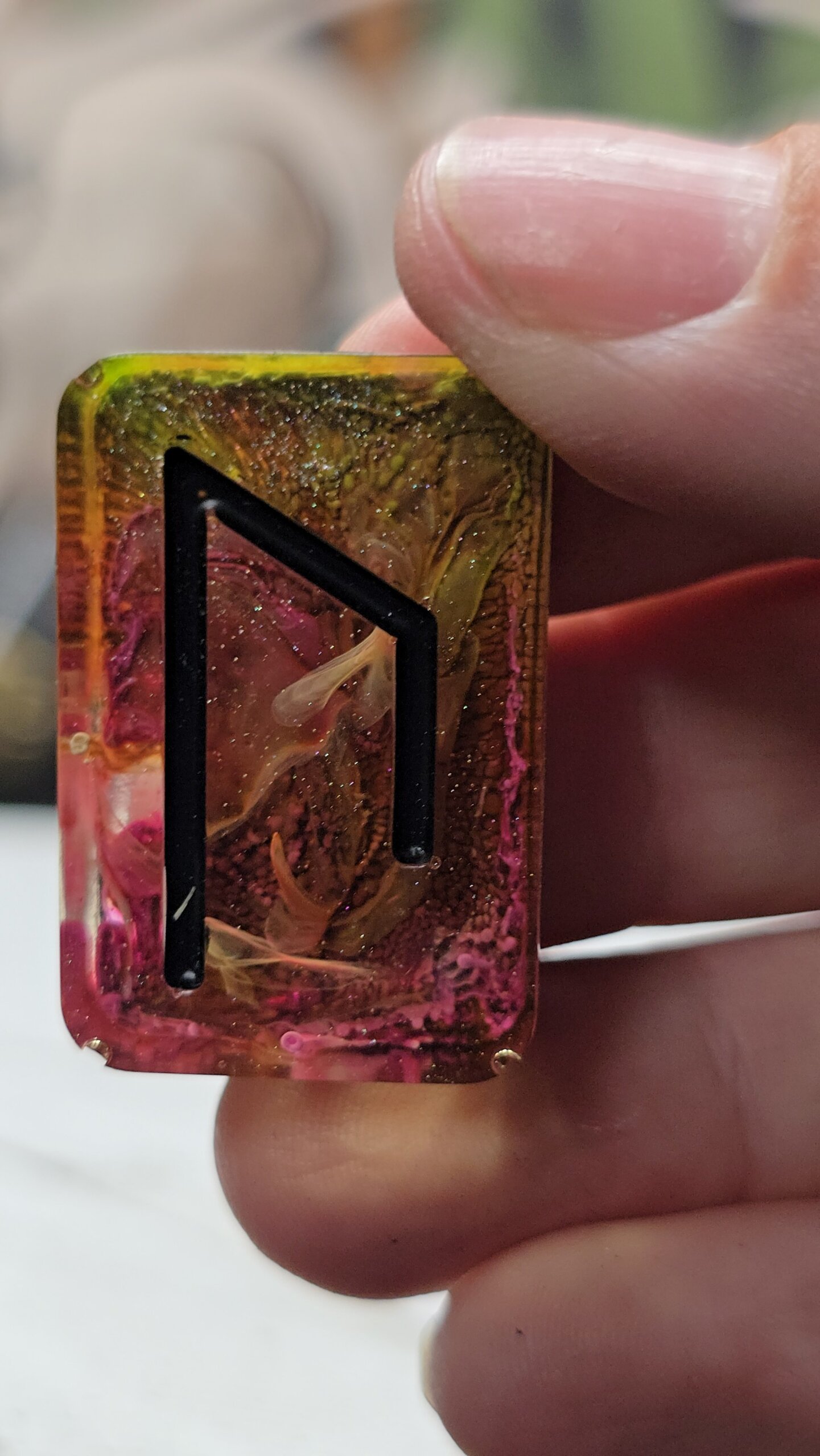 Witness the swirling mists of mystic energy captured within the resin, each piece dripped with pigments that tell their own story – perhaps the deep onyx of a shadowy beast’s lair, the fiery crimson of a dragon’s breath, or the earthy greens of an ancient grove.