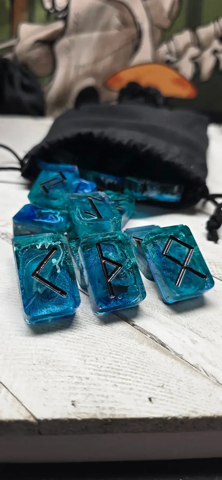 Each set is a one-of-a-kind creation, born from the careful hands of a fellow adventurer. Like treasures discovered within a dragon’s hoard or potent ingredients gathered under a silvery moon, every rune has been individually formed and imbued with its own distinct character.