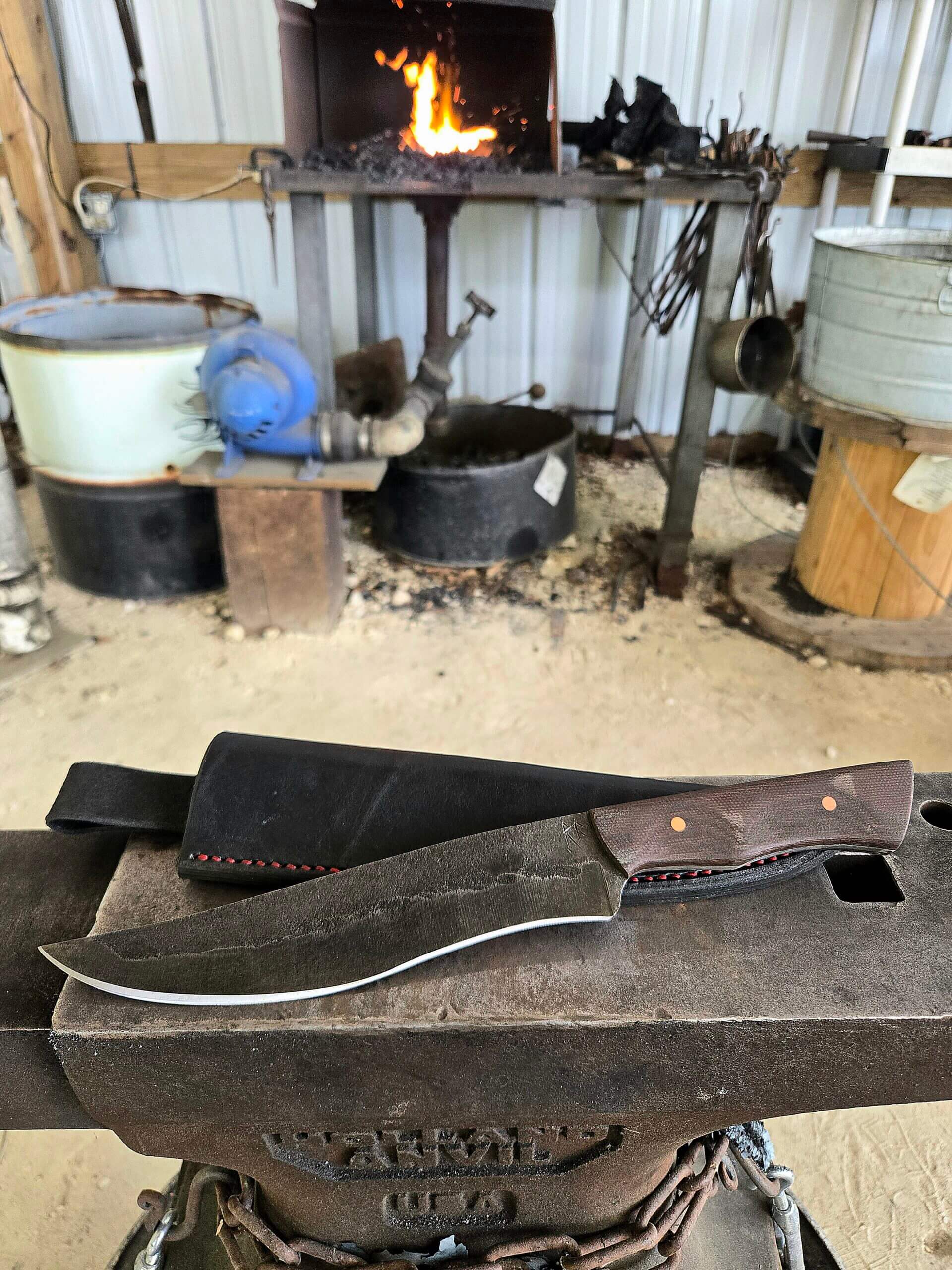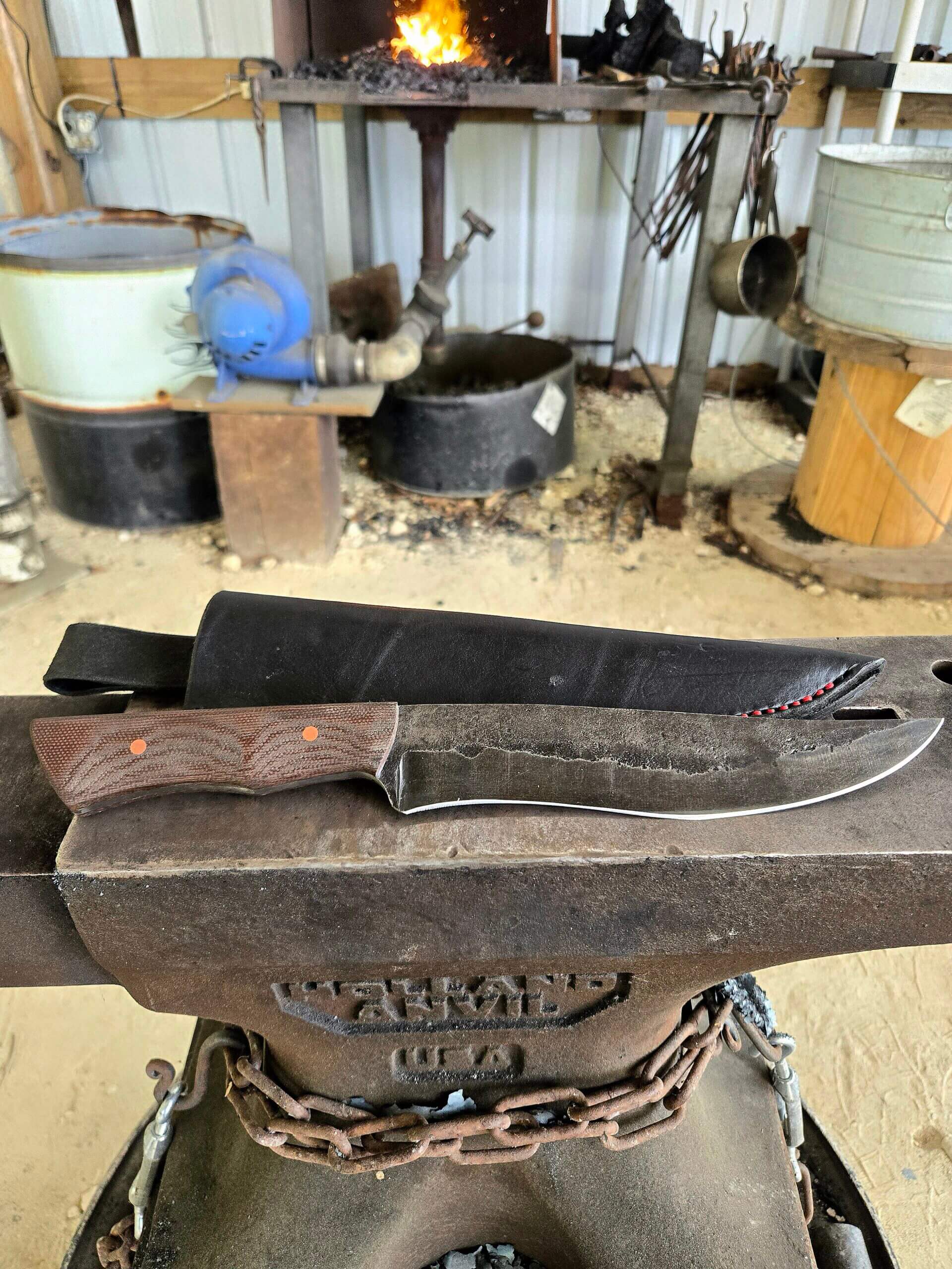 • Handle: Vintage Micarta (Coke-bottle contour) with solid copper pins